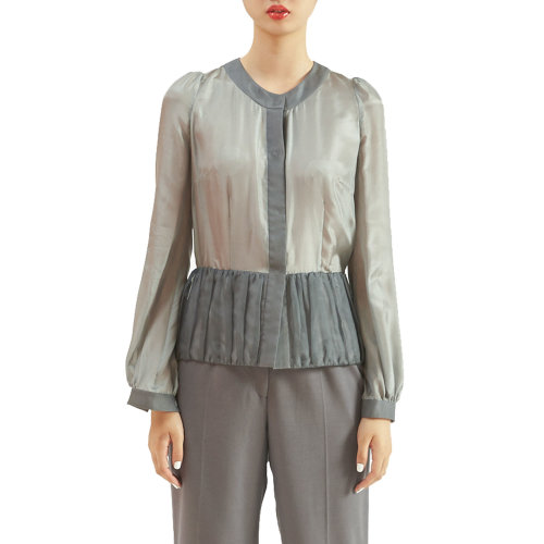 19年春夏款nisiss/怡夕乔其密褶拼接领上衣女装定制n122xf09