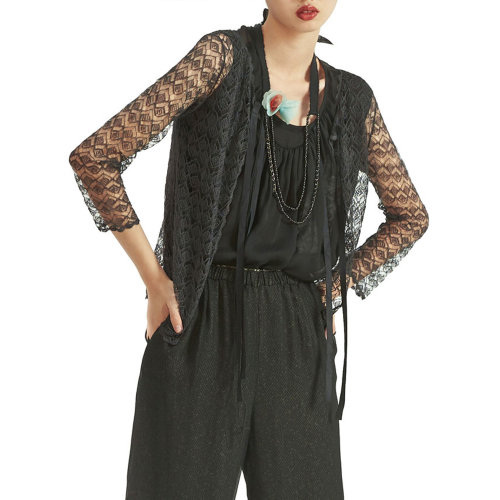 nisiss/怡夕19秋冬蕾丝花纹两件式开衫针织衫女士针织衫/毛衣n161sk06