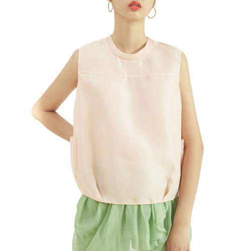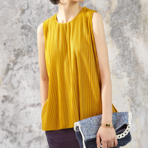 19年秋冬款nisiss/怡夕工字褶垂坠无袖上衣女士短袖T恤N192AV01