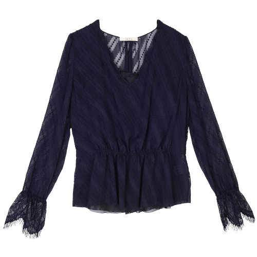 19年秋冬款nisiss/怡夕V领不规则袖口上衣女士长袖T恤N186SF01