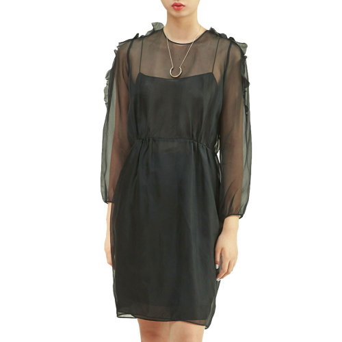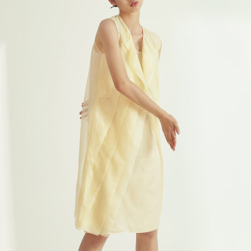 nisiss/怡夕斜裁撕片前襟两用外套连身裙女士连衣裙n152so15