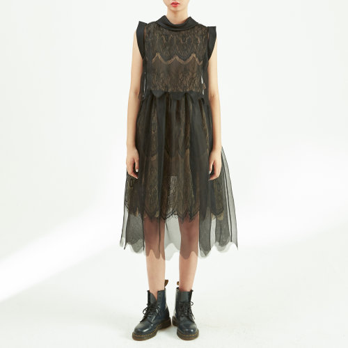 nisiss/怡夕蕾丝里布网纱叠透连身裙女士连衣裙N151AO04