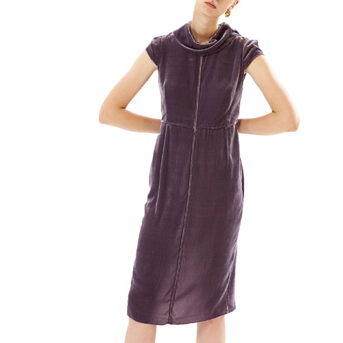 19年秋冬款nisiss/怡夕高领紫色中长连衣裙女士连衣裙N192AO03