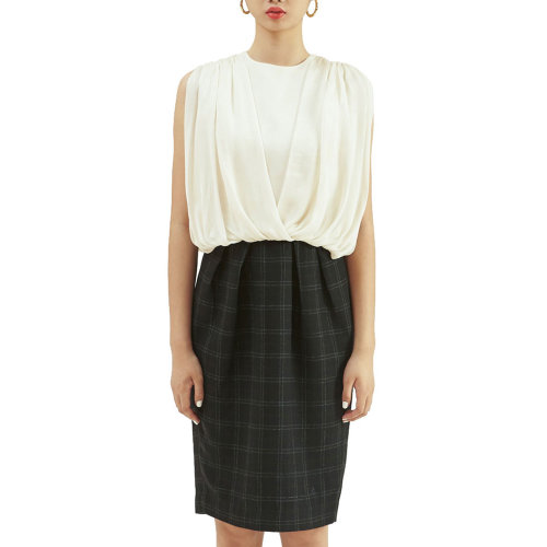 19年秋冬款nisiss/怡夕上下拼接收腰无袖连身裙女士连衣裙n151so04