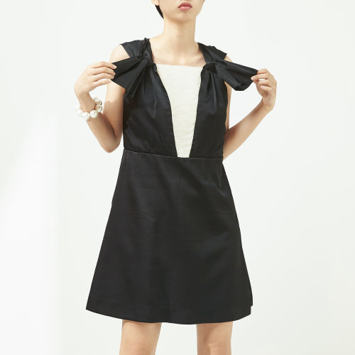 nisiss/怡夕梯形领装饰肩带黑白拼接连身裙女士连衣裙y164xo08