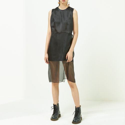 nisiss/怡夕柯根纱压褶拼接立领无袖上衣女装定制N112XF07