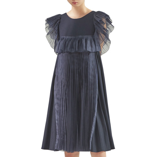 19年春夏款 nisiss/怡夕百褶拼接袖宽松阔摆连身裙女士连衣裙y151so20