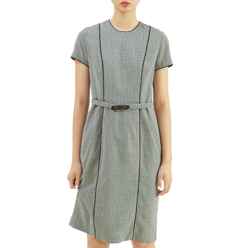 19年秋冬款nisiss/怡夕棉纱格纹圆领收腰连身裙女士连衣裙y141ao01