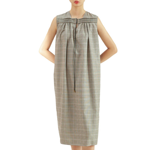 19年春夏款nisiss/怡夕格纹系带领无袖宽松连衣裙女士连衣裙Y151SO56