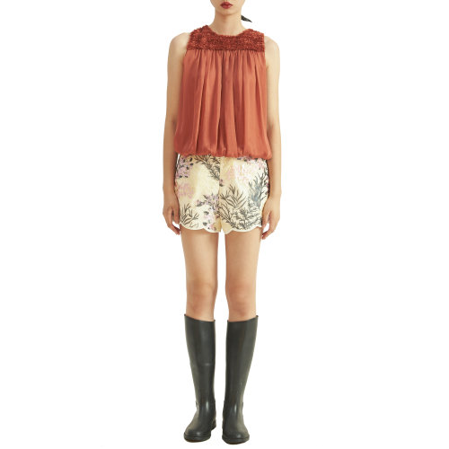 19年春夏款nisiss/怡夕花形衣角印花布短裤女士短裤n182xi04