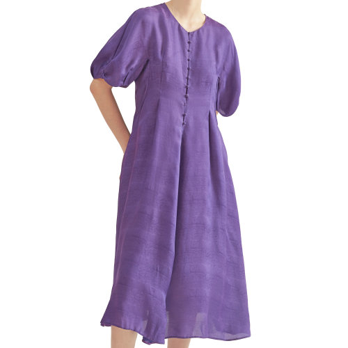 nisiss/怡夕长款灯笼袖蘑菇扣饰伞形连身裙女士连衣裙n173so20