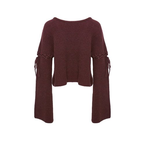 SHOKAY/绣嘉 利落复古都市邂逅绑带宽袖套衫女士针织衫/毛衣
