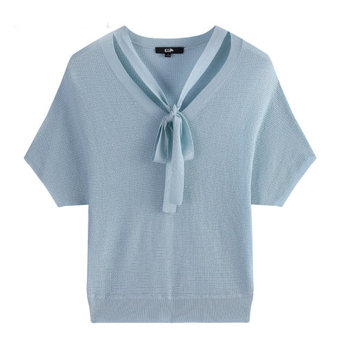 SHOKAY/绣嘉 女士针织衫/毛衣 系带V领蝙蝠短袖针织衫