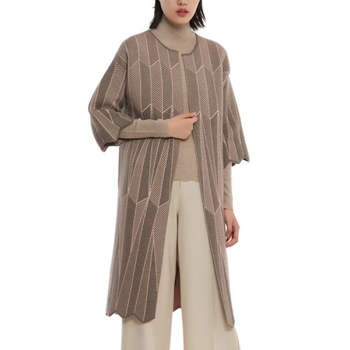 DUXI/度兮【定制】 女士针织衫/毛衣 驼粉色羽翼织纹大衣 (锦绣中华——2018非遗产服饰秀)同款服装 驼色 M