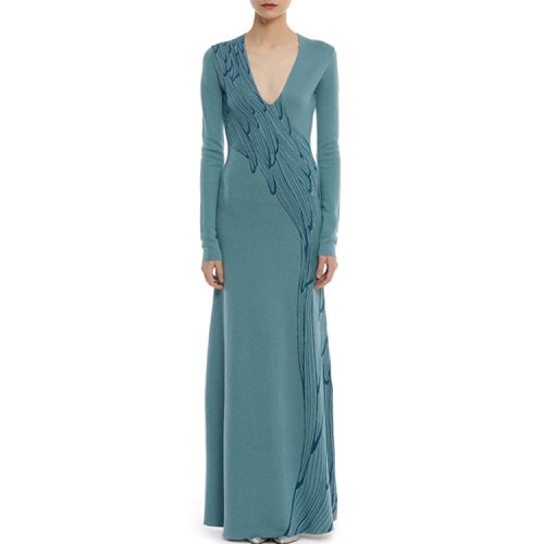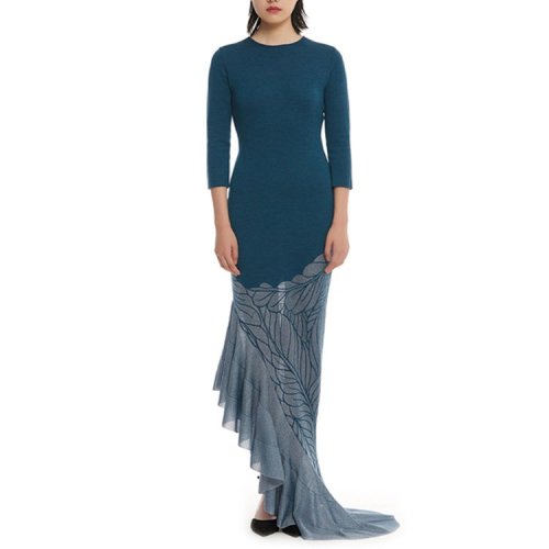 DUXI/度兮【定制】 女士礼服 深V羽翼纹样礼服裙 (锦绣中华——2018非遗产服饰秀)同款服装 蓝绿色 XS