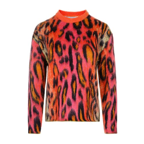 Stella McCartney/斯特拉?麦卡特尼 圆领 长袖 橙红色混色 豹纹 绒 柔软 女士 毛衣