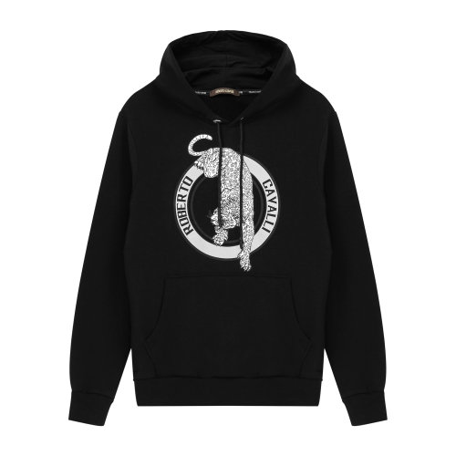 Roberto Cavalli/罗伯图 卡维里 男卫衣 休闲男装连帽拉链纯棉纯色印花图案帽衫 男士夹克 男士外套 卫衣