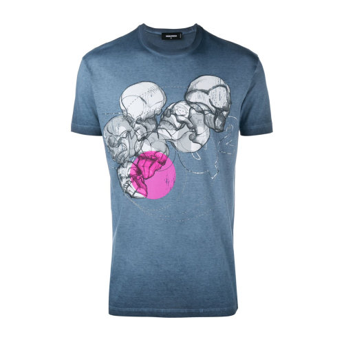 Dsquared2/D二次方 灰蓝色头骨抽象印花男士T恤