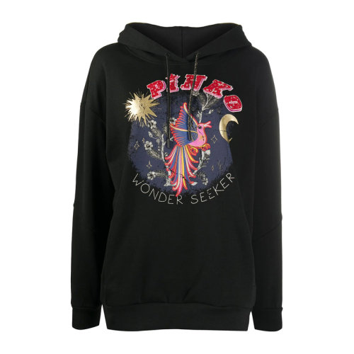 PINKO/品高 女士 服装 黑色圆形印花图案棉质连帽卫衣 女卫衣