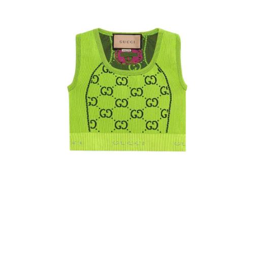 GUCCI古驰 22年秋冬 女士 GG针织提花无袖上衣 693286 XJEFY 7401