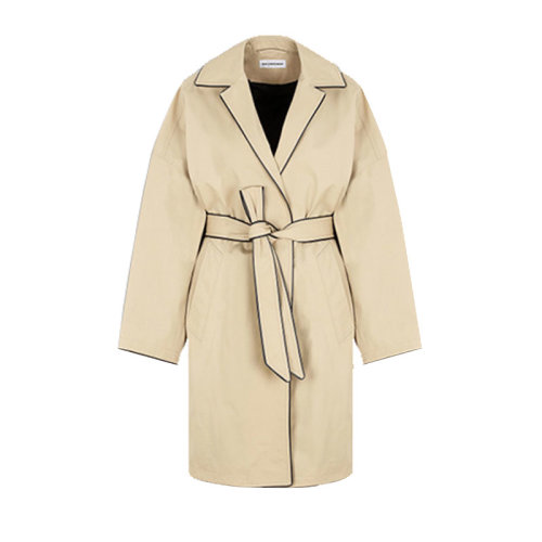 Balenciaga/巴黎世家 女装 时尚百搭 卡其色棉质绑带侧口女士大衣 607491TAP01 9020