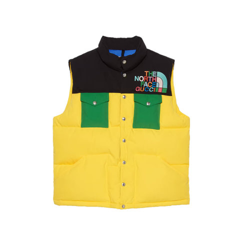 GUCCI/古驰 22秋冬款 The North Face联名系列 女士多色聚酰胺饰有彩色刺绣LOGO徽标四个前袋设计按扣开合羽绒服马甲?672459XAAER7265
