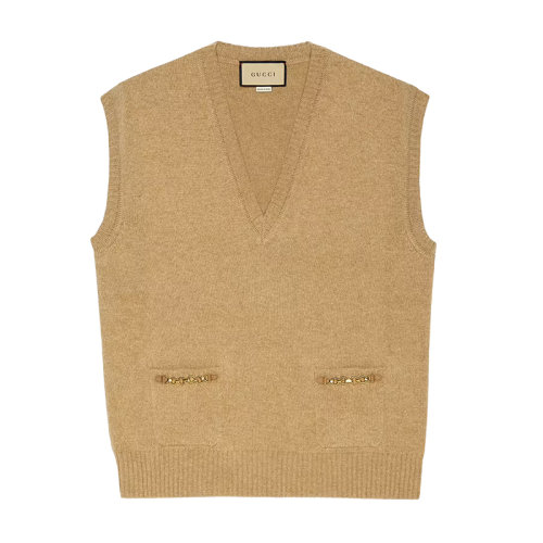GUCCI/古驰 女士驼色饰链条细节纯羊绒马甲678443XKB1R2184