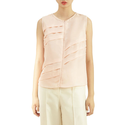 nisiss/怡夕斜纹拼接圆领无袖上衣女装定制n162wf49