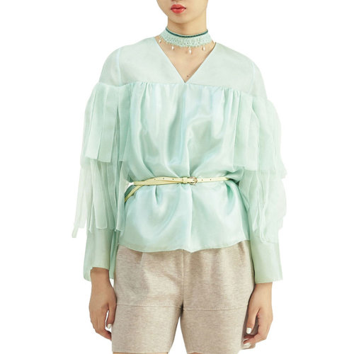 nisiss/怡夕荷叶边活动披肩装饰柯根纱上衣女装定制N181AF0871