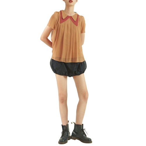 19年春夏款nisiss/怡夕乔其密褶拼接领上衣女装定制n122xf09