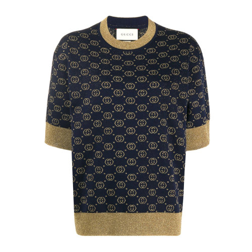 GUCCI 古驰 女装 服装 羊毛双G印花互扣式GLAMé羊毛提花短袖圆领套头衫 女士针织衫/毛衣