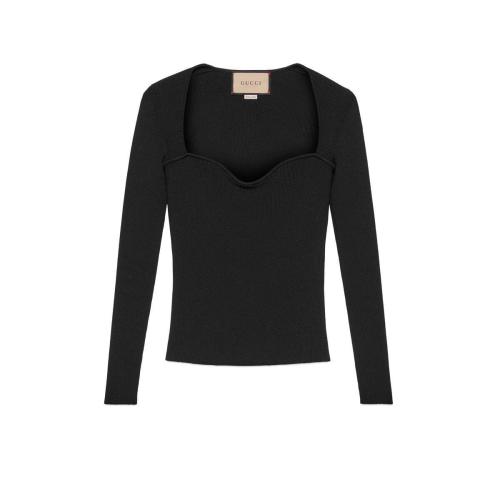 GUCCI古驰 22年秋冬 女士 弹力粘胶纤维紧身上衣 670629 XKB1Q 1000 预定商品2-6周发货