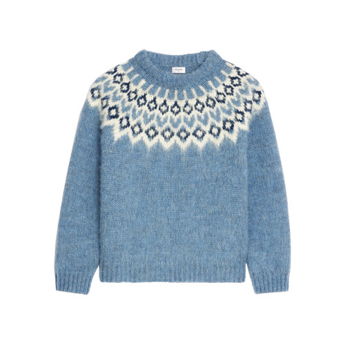 CELINE/赛琳 22年秋冬新款 女士浅蓝色羊毛饰有白色/黑色提花图案圆领罗纹毛衣2AD30120O.07BL