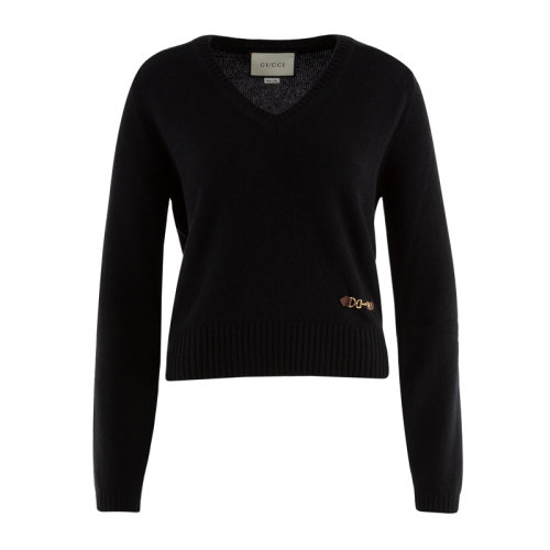 GUCCI/古驰 女士黑色羊绒V领长袖毛衣针织衫女装