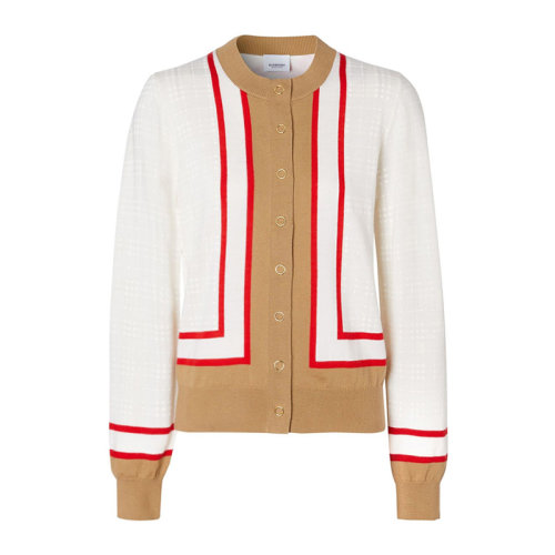 Burberry 博柏利 女士服装 白色羊毛开衫 女士针织衫毛衣