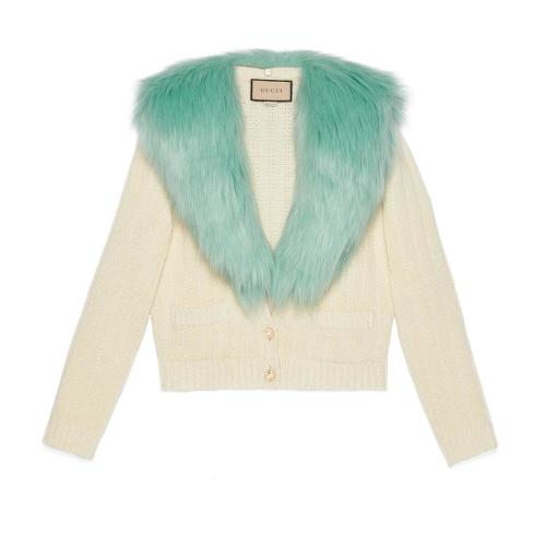 GUCCI古驰 22年秋冬 女士 饰环保毛皮羊毛羊绒开衫 695722 XKCER 9069
