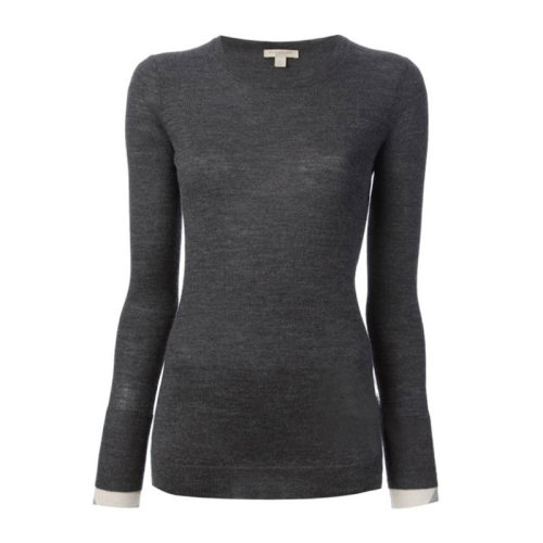 BURBERRY/博柏利 女装 服饰休闲百搭 深灰色 羊绒圆领修身简约套头衫 女针织衫毛衣 3891236