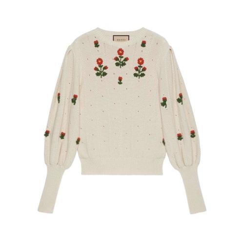 GUCCI古驰 22年秋冬 女士 花卉刺绣针织棉羊毛毛衣 653328 XKBS9 9783