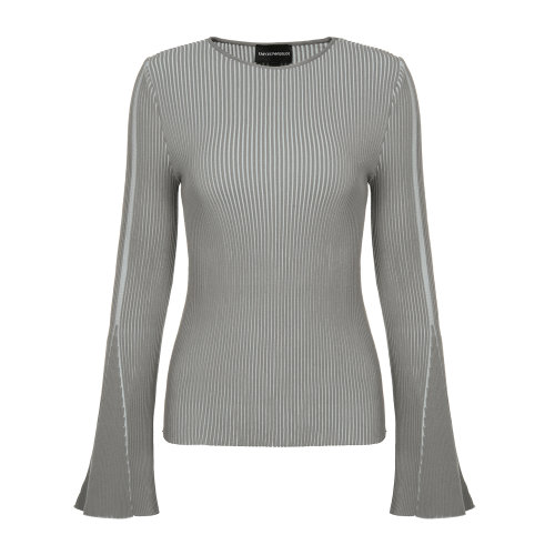 Emporio Armani/安普里奥阿玛尼 灰色 女士条纹纹理喇叭袖修身针织衫 3H2MWH-2M31Z-0756