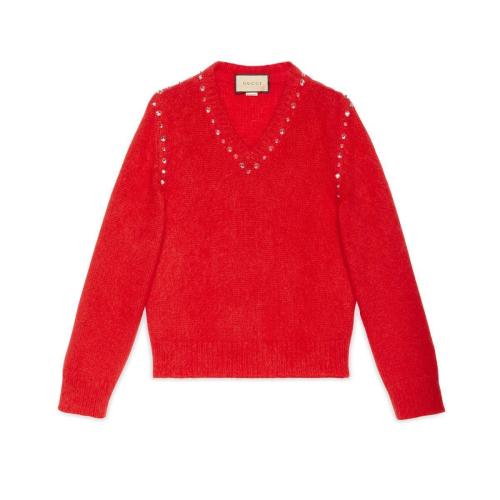 GUCCI古驰 22年秋冬 女士 饰铆钉马海毛毛衣 721152 XKCQM 6429