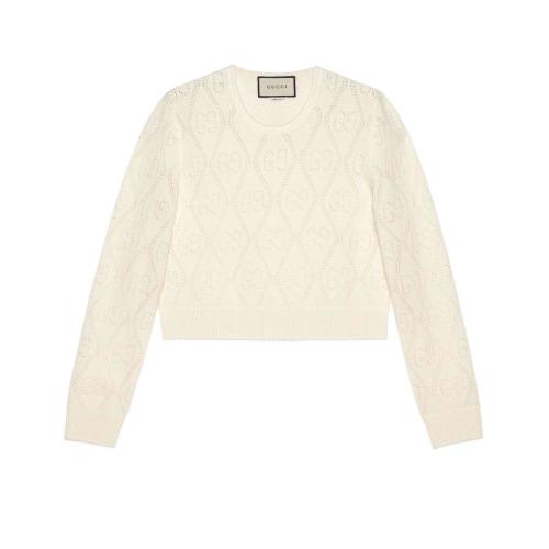 GUCCI古驰 22年秋冬 女士 GG镂空羊毛短款毛衣 642115 XKBL7 9200