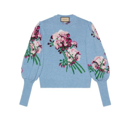 GUCCI古驰 22年秋冬 女士 花朵嵌花羊毛毛衣 664326 X1274 4318