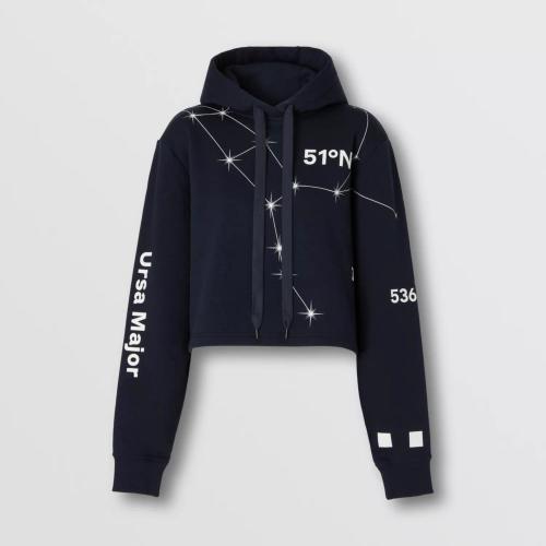 BURBERRY 22年秋冬 女士 星座印花棉质短款连帽衫 80613201