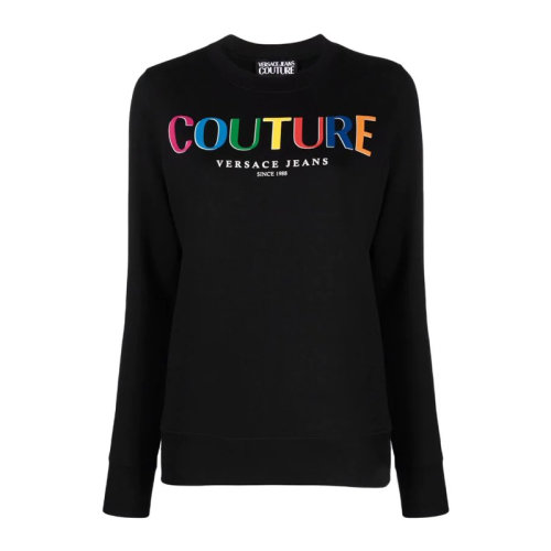 VERSACE JEANS/范思哲牛仔 女士黑色棉质经典彩色字母徽标印花装饰圆领长袖上衣卫衣运动衫套头衫 71HAIP04-CF00P-899