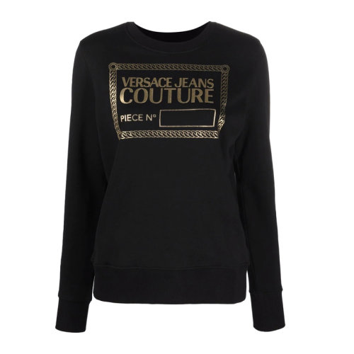 VERSACE JEANS/范思哲牛仔 女士黑色棉质经典字母徽标印花装饰圆领长袖上衣卫衣运动衫套头衫 B6HZA7TZ-30318-K42