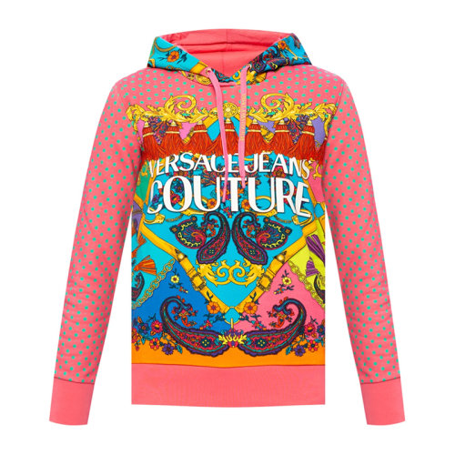 VERSACE JEANS/范思哲牛仔 女士彩色棉质经典字母徽标印花装饰长袖上衣卫衣连帽衫套头衫 B6HZA7PM-30394-445