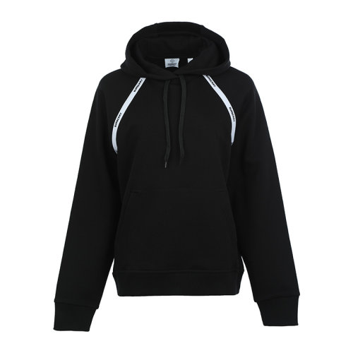 Valentino/华伦天奴 女士黑色棉质平纹针织重磅蕾丝经典字母徽标印花装饰连帽抽绳长袖上衣卫衣连帽衫套头衫运动衫 WB3MF11B-6GW-0NI