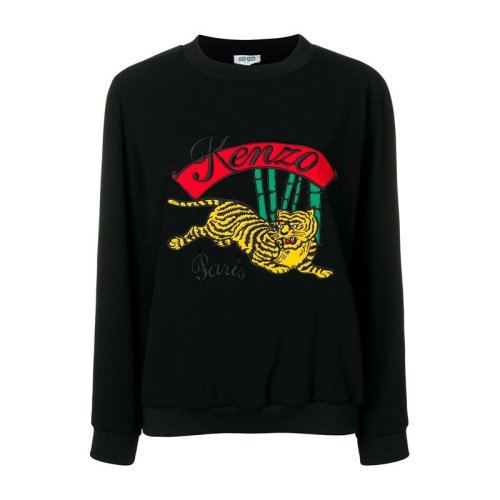 Kenzo 高田贤三 女装 服饰 黑色棉质卧虎LOGO刺绣时尚休闲圆领套头 女卫衣