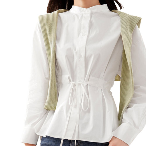 GeleiStory/GeleiStory 夏季新款简单干净的法式衬衫抽绳收腰立领纯棉衬衣女装上衣 女士长袖衬衫