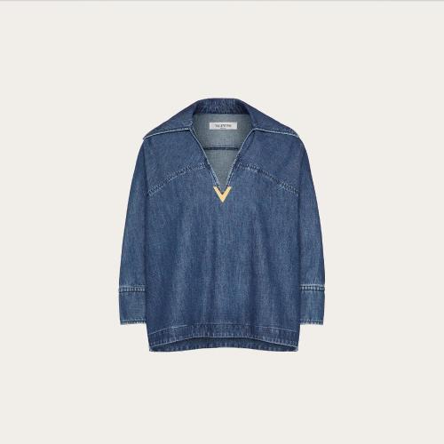 VALENTINO华伦天奴 22年秋冬 女士 长袖衬衫 TOP CAFTAN EN CHAMBRAY DENIM XB3DB01J433558